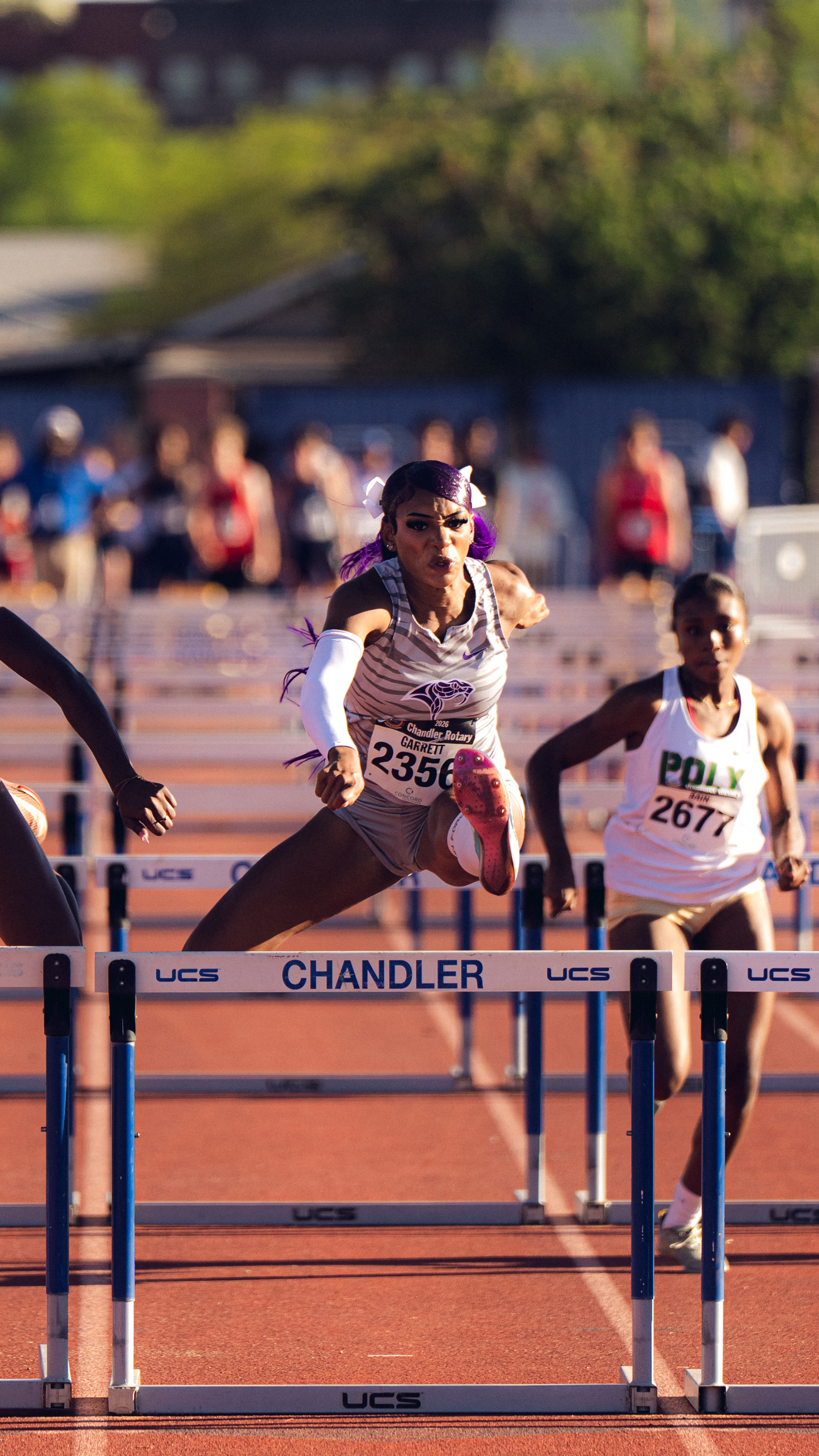 North Canyon’s Rebekah Jhade-Garrett winning the 100mH at the Chandler Rotary Invitational